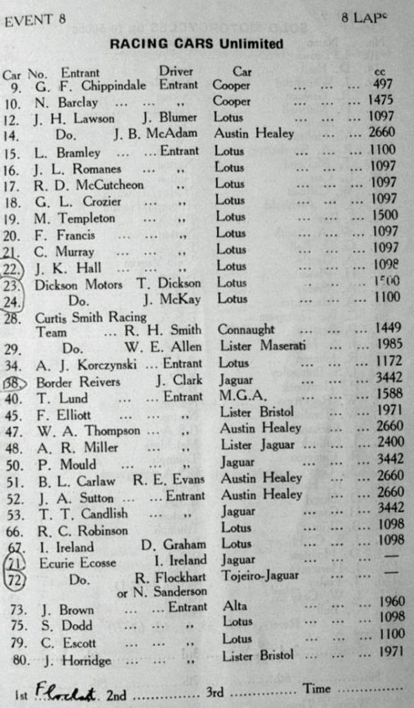Ron Flockhart (35), Innes Ireland (28), Jim Clark (22)