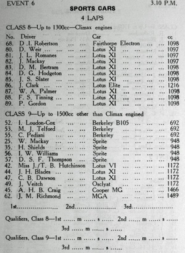 Lotus Eleven (7), Austin-Healey Sprite (3)