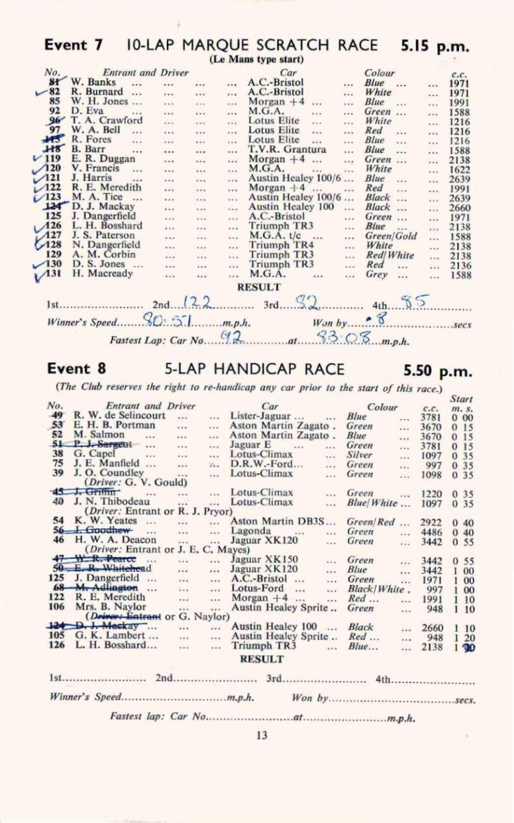 Lotus (3), Aston Martin (3), Austin-Healey (2)