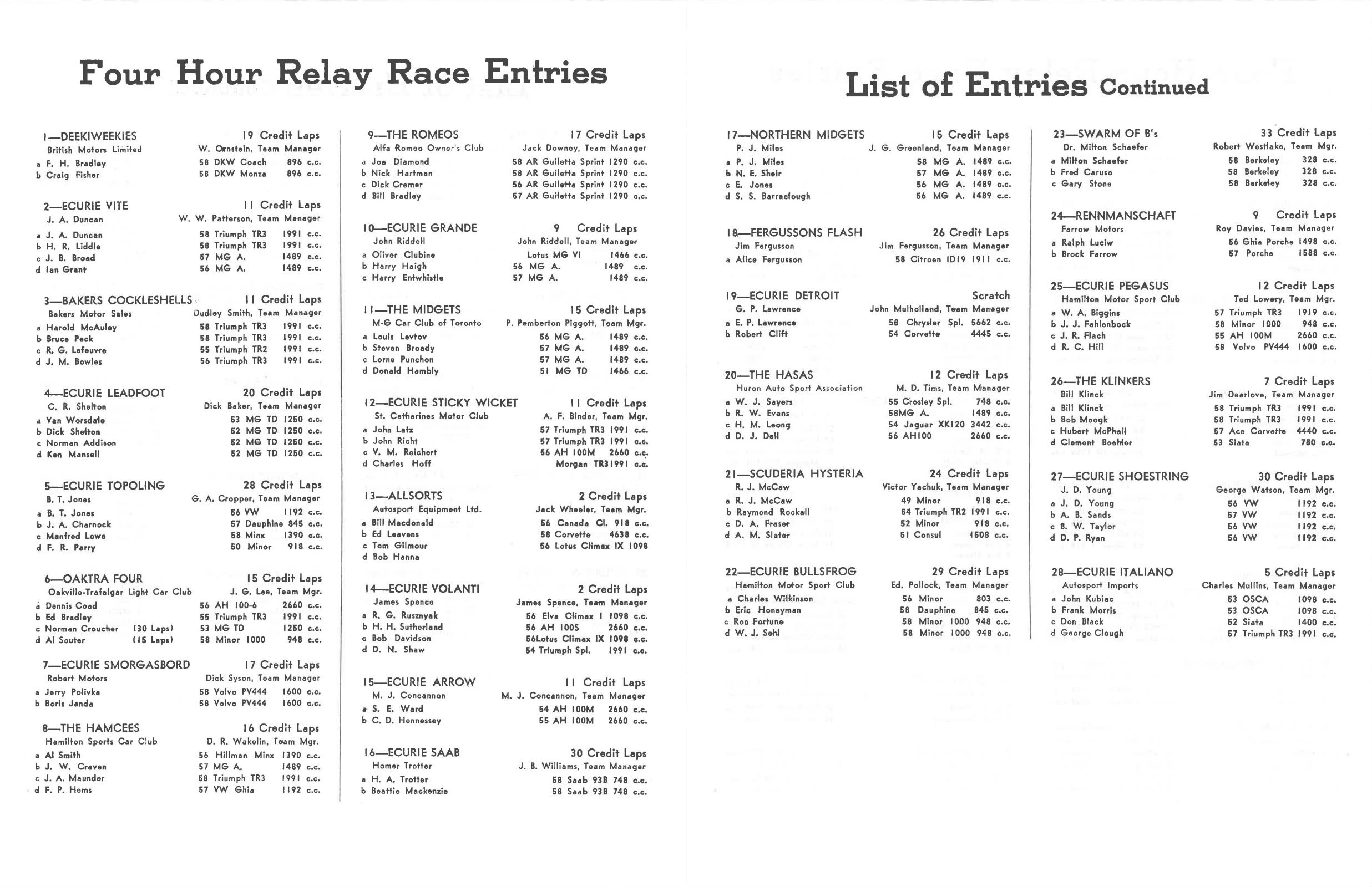MG A (13), Triumph TR3 (13), Austin-Healey 100 (7)