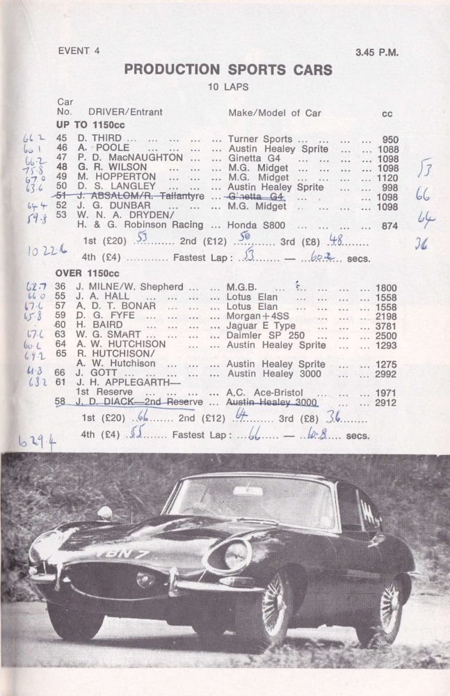Austin-Healey Sprite (3), MG Midget (3), Lotus Elan (2)