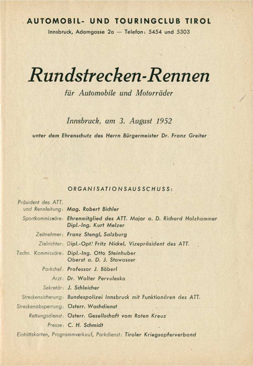 Rundstrecken-Rennen für Automobile and Motorräder Innsbruck