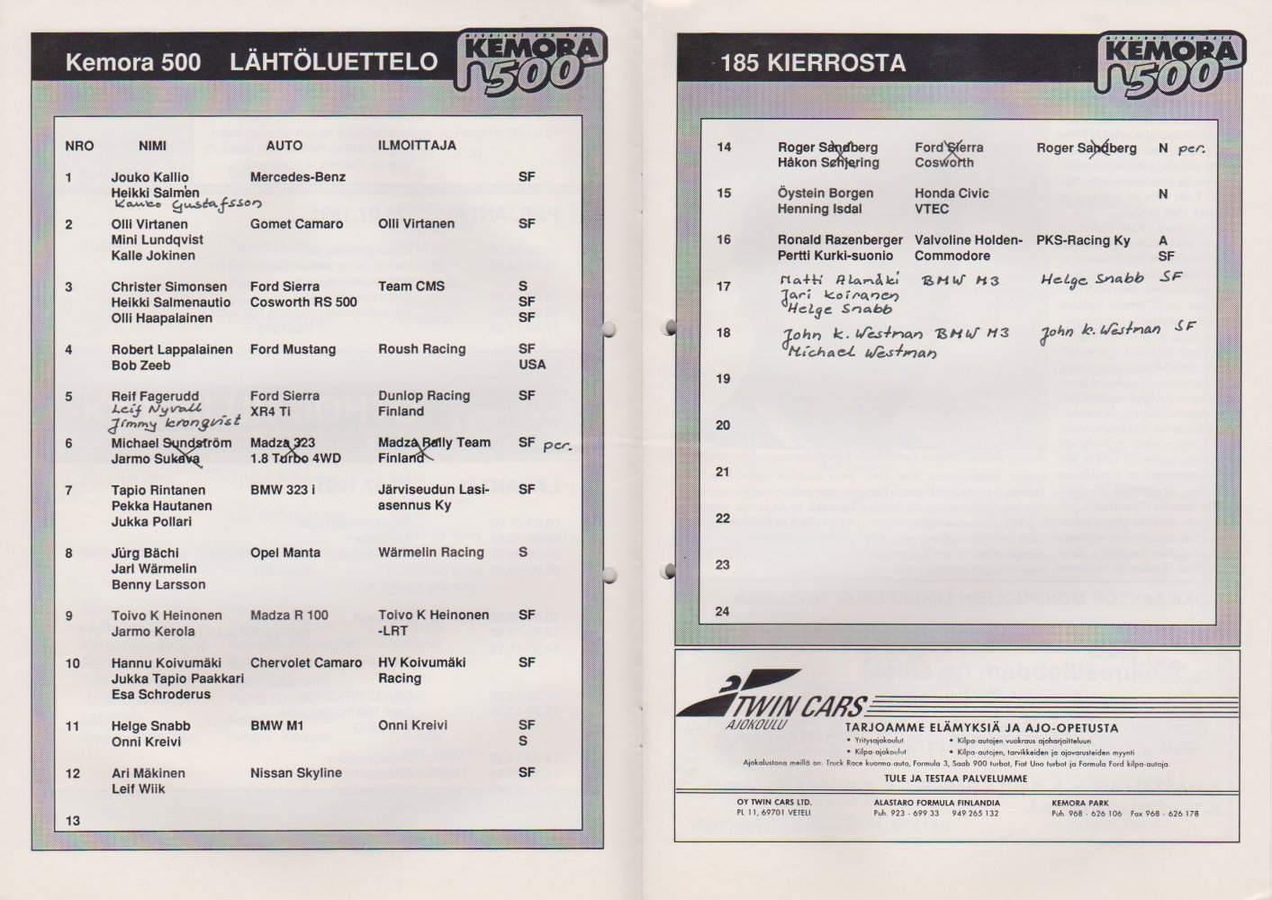 BMW M3 (2), Ford Sierra (2), Chevrolet Camaro (2)