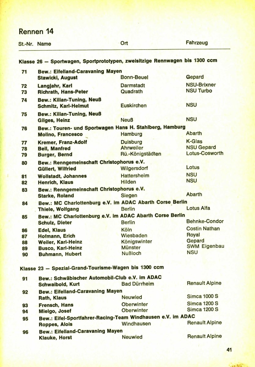 Porsche (14), Opel (2), Renault (2), Ford (2)
