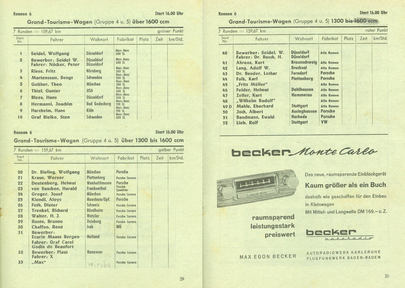 Porsche 356 (4), Alfa Romeo Giulietta Veloce (3), Mercedes-Benz 300 SL (3)