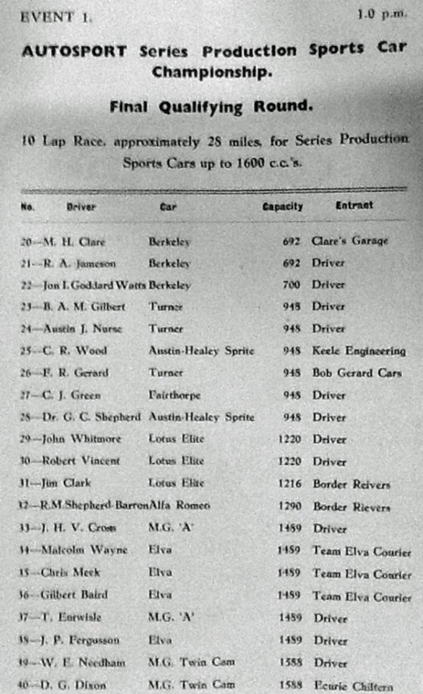Elva (4), MG (4), Turner (3), Lotus (2), Berkeley (2)