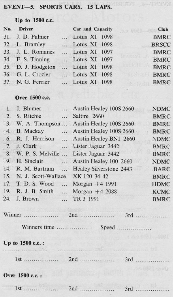 Lotus Eleven (5), Austin-Healey 100 (2)