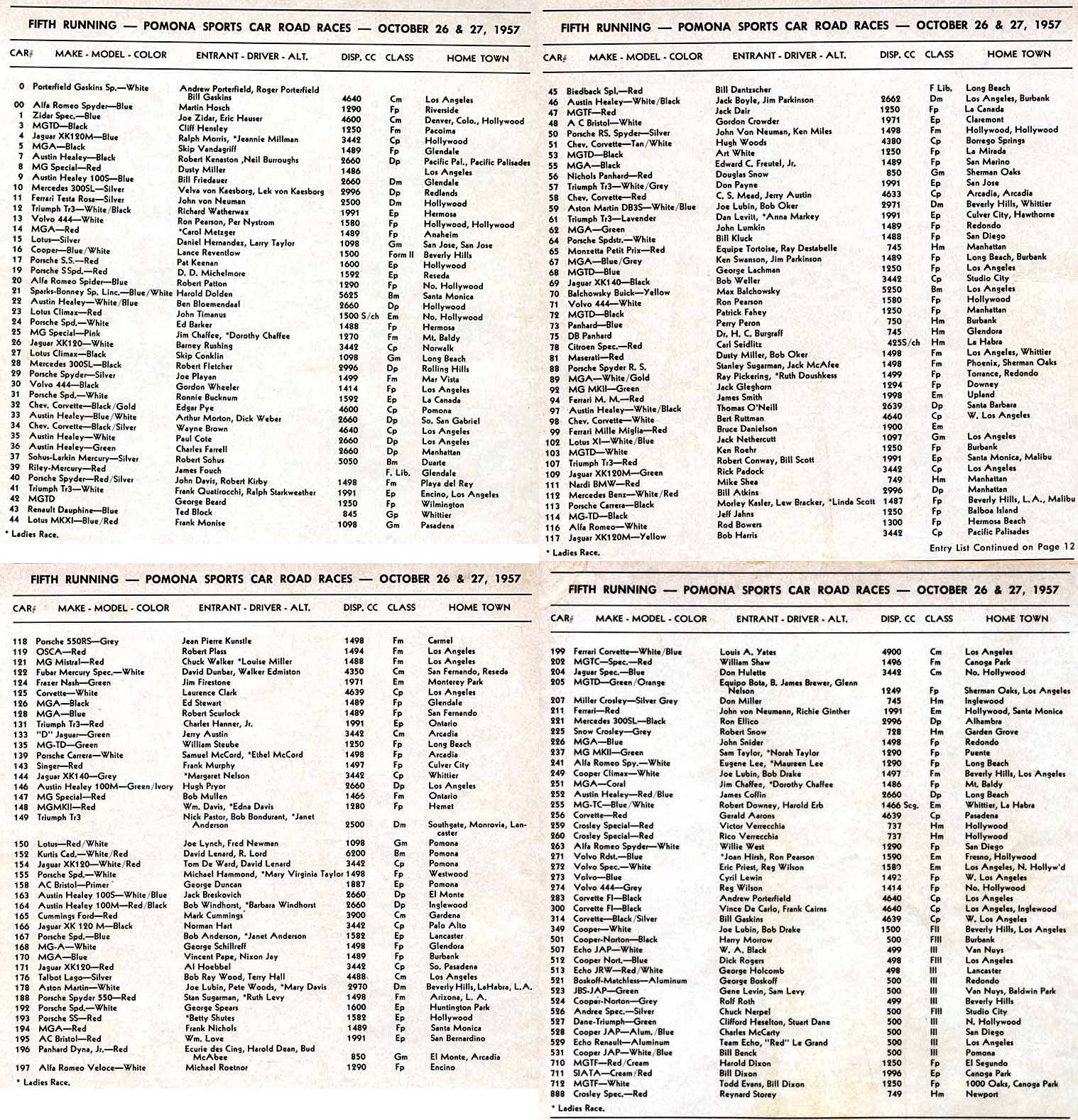 Fifth Running Pomona Sports Car Road Races