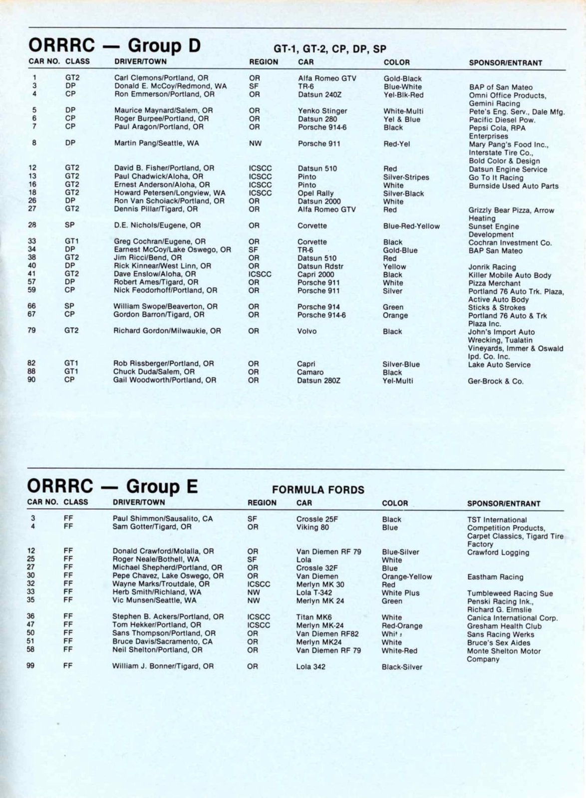 SCCA Regional Portland [GT1+GT2+CP+DP+SP] 1982