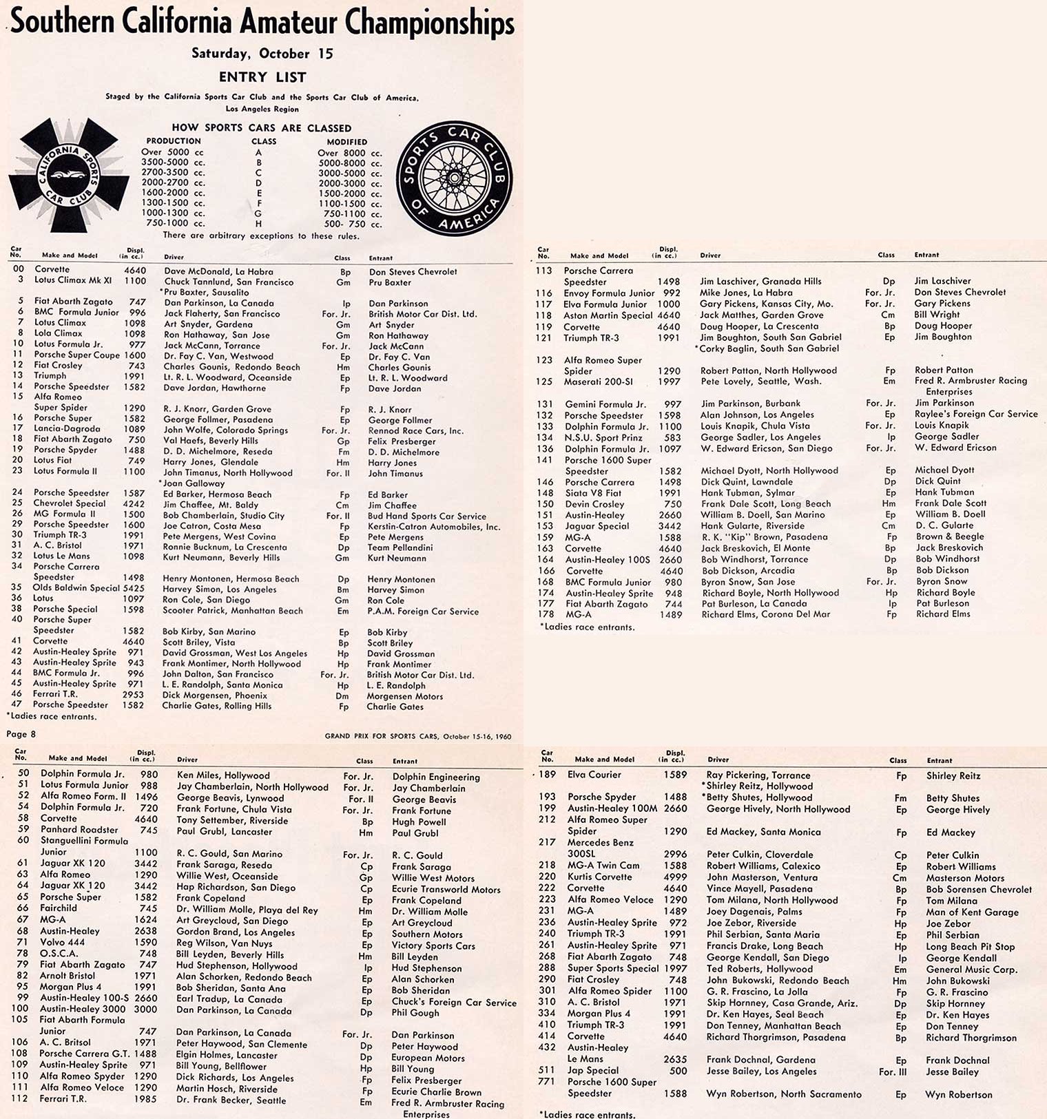 The Grand Prix For Sports Cars And Southern California Amateur Sports Car Championships