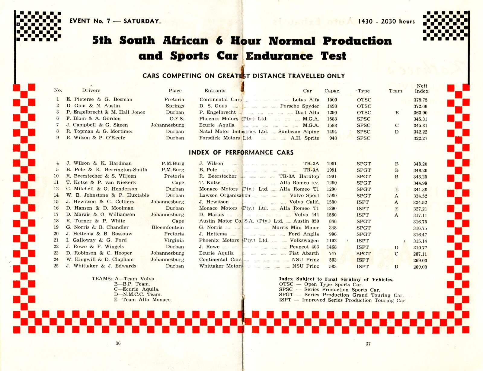 5th South African 6 Hour Normal Production and Sports Car Endurance Test