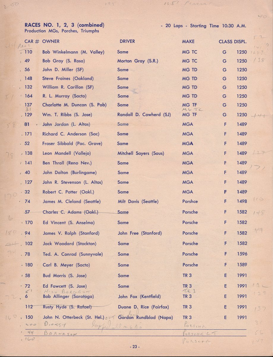 It was a combined race and the manufacturers groups started in 20 seconds intervals: Triumphs, then Porsches and finally MGs.