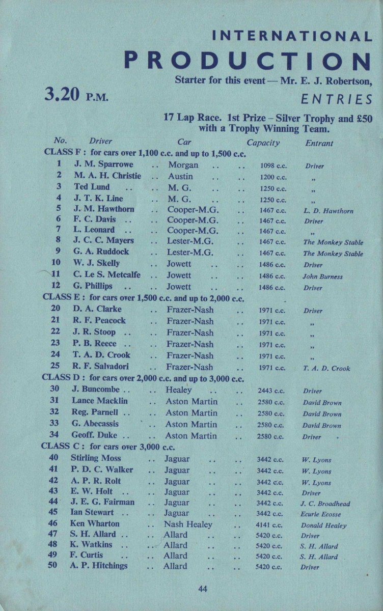 Jaguar (6), Frazer Nash (6), Aston Martin (4), Allard (4), Jowett (3)