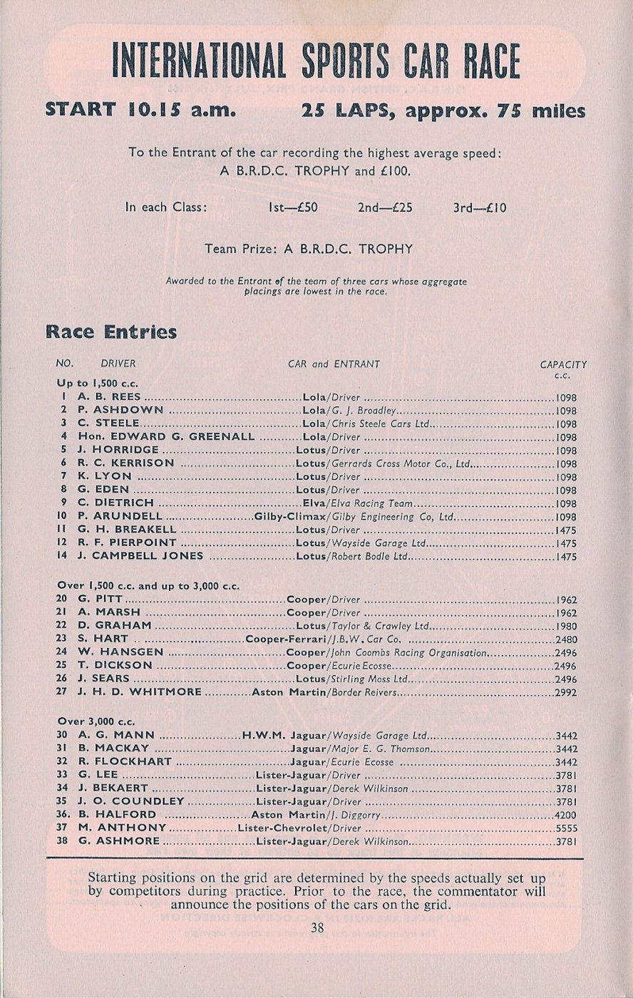 Cooper Monaco (5), Lola Mk.1 (3), Jaguar D-type (2)