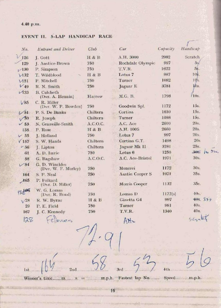 AC (2), Jaguar (2), Ford (2), Austin-Healey (2), Lotus (2), Turner (2)