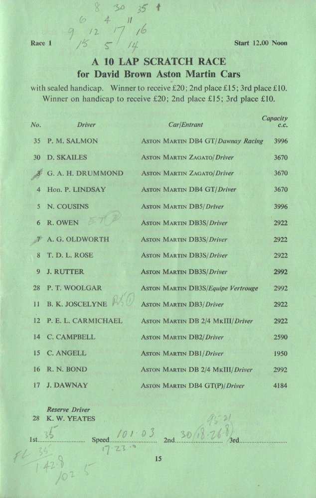 Aston Martin DB3S (3), Aston Martin DP214 (2), Aston Martin DB2/4 (2), Aston Martin DB4 GT (2)