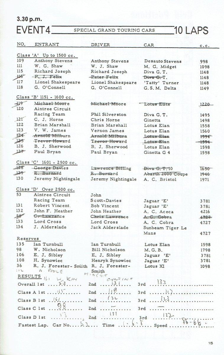 Jaguar E-type (4), Lotus Elan (4), Diva GT (2), MG Midget (2)