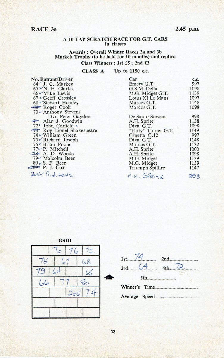 MG (3), Diva (2), Austin-Healey (2), Marcos (2)