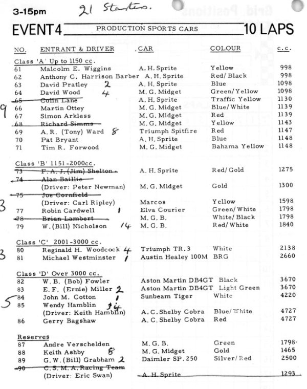 MG Midget (5), Austin-Healey Sprite (4), AC Cobra (2), MG B (2), Aston Martin DB4 GT (2)