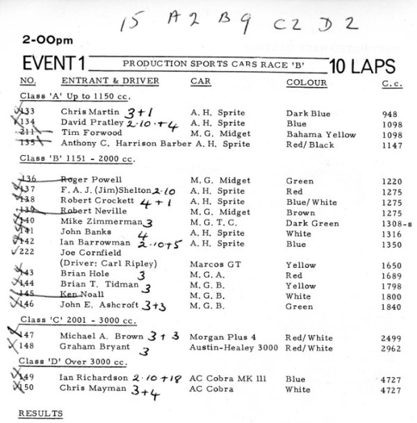 Austin-Healey (7), MG (4), AC (2)