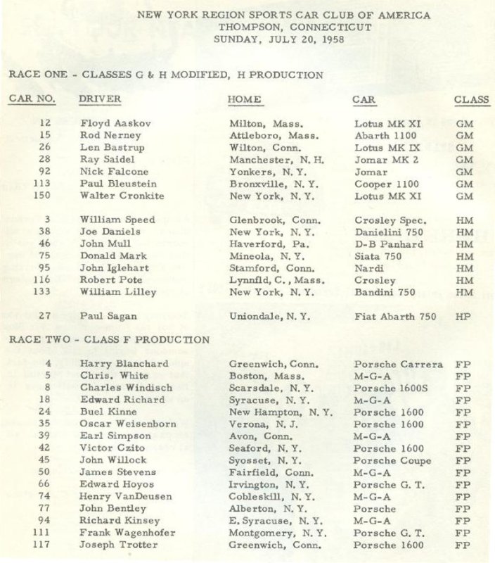 SCCA Regional Thompson - Classes GM+HM+HP 1958