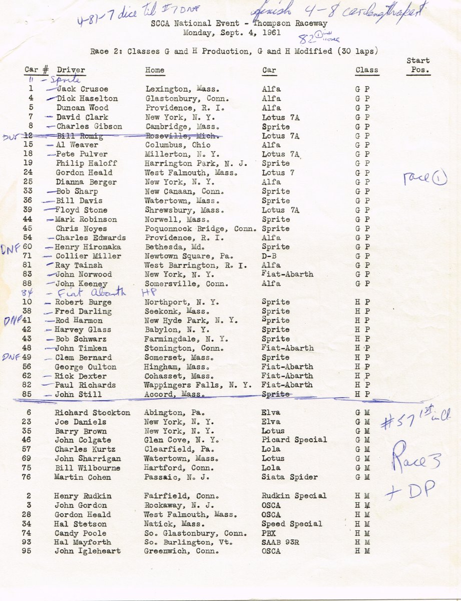 Austin-Healey Sprite (12), Alfa Romeo Giulietta (6), Lotus Seven (5)