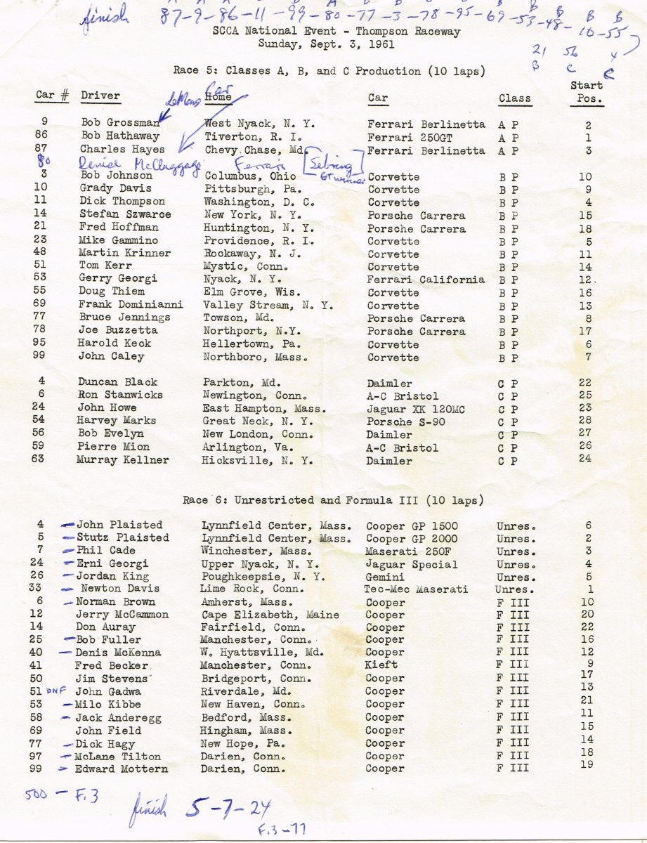 Denise McCluggage (34), Bob Johnson (34), Frank Dominianni (37)