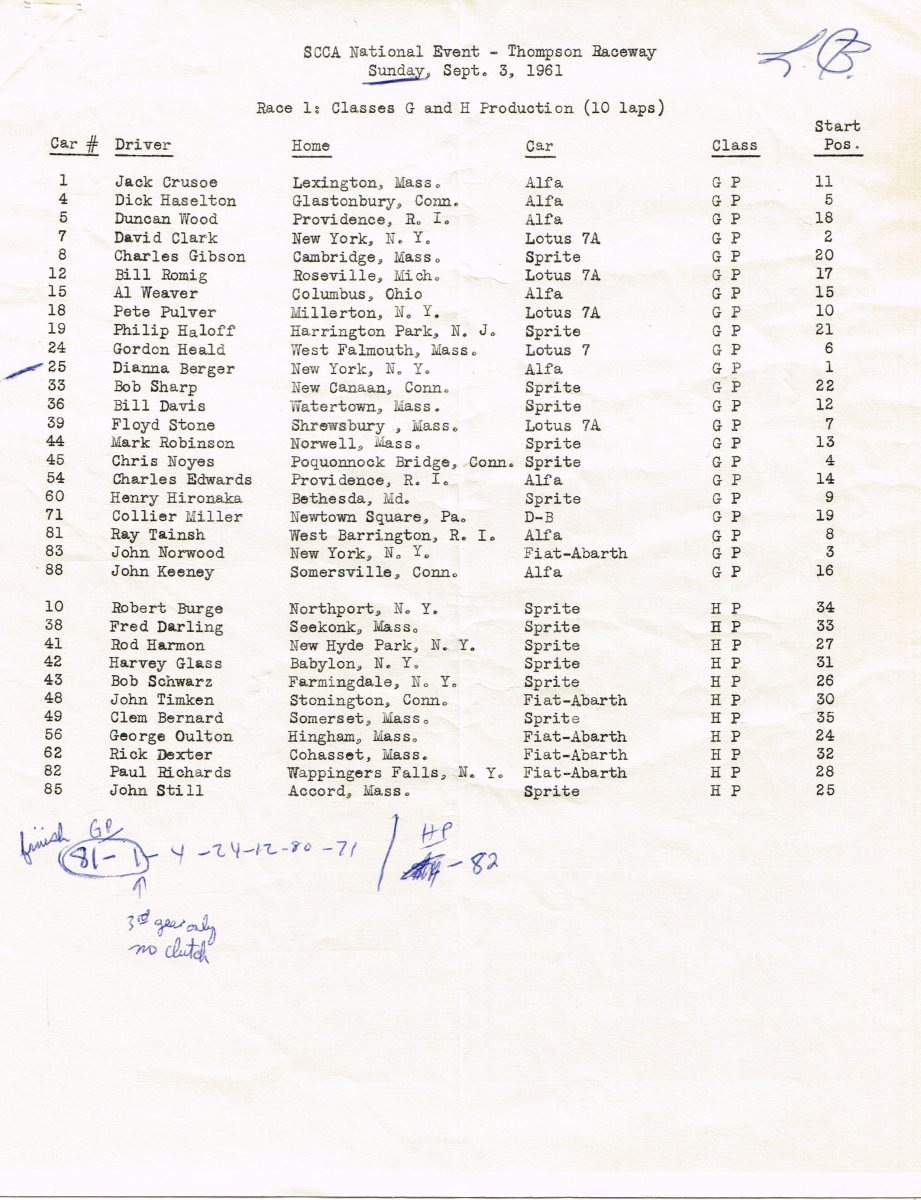 Austin-Healey Sprite (13), Alfa Romeo Giulietta (7), Lotus Seven (5)