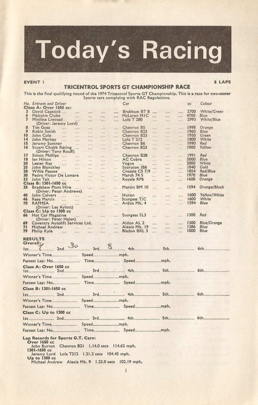 The final qualifying round of the 1974 Tricentrol Sports GT Championship.