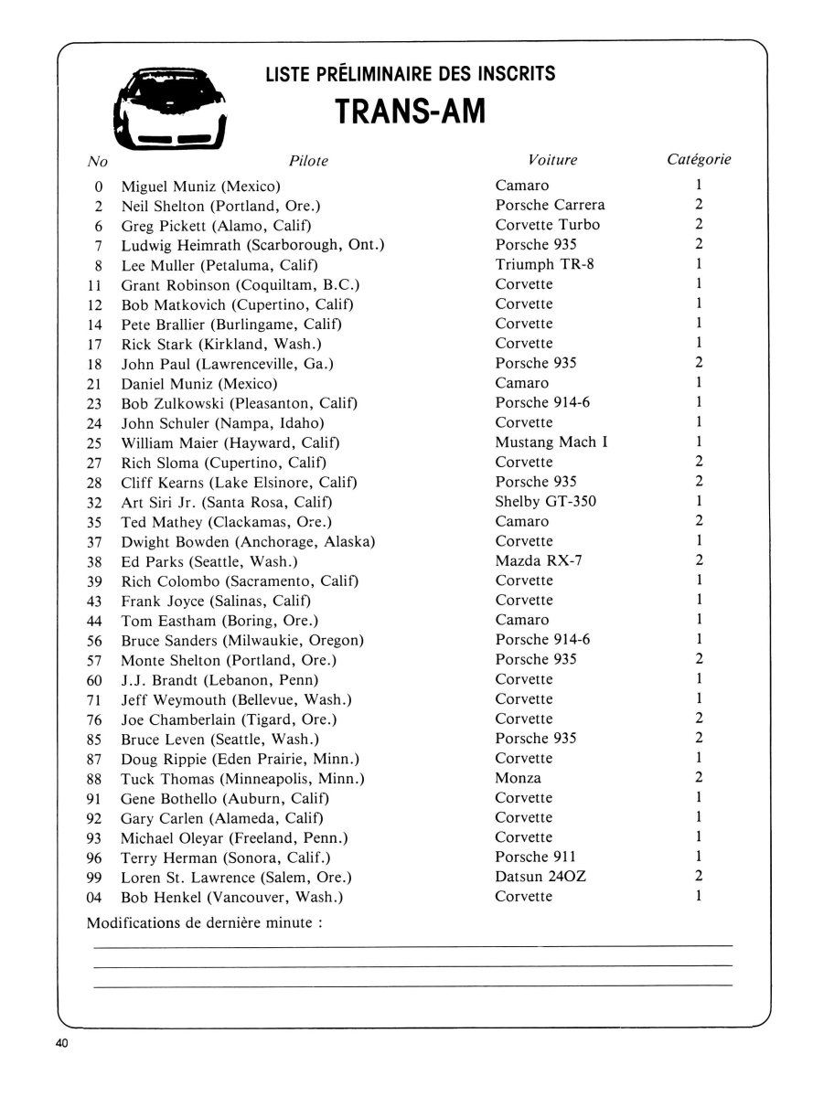 Chevrolet Corvette (11), Chevrolet Camaro (6), Porsche 935 (3), Chevrolet Monza (3)