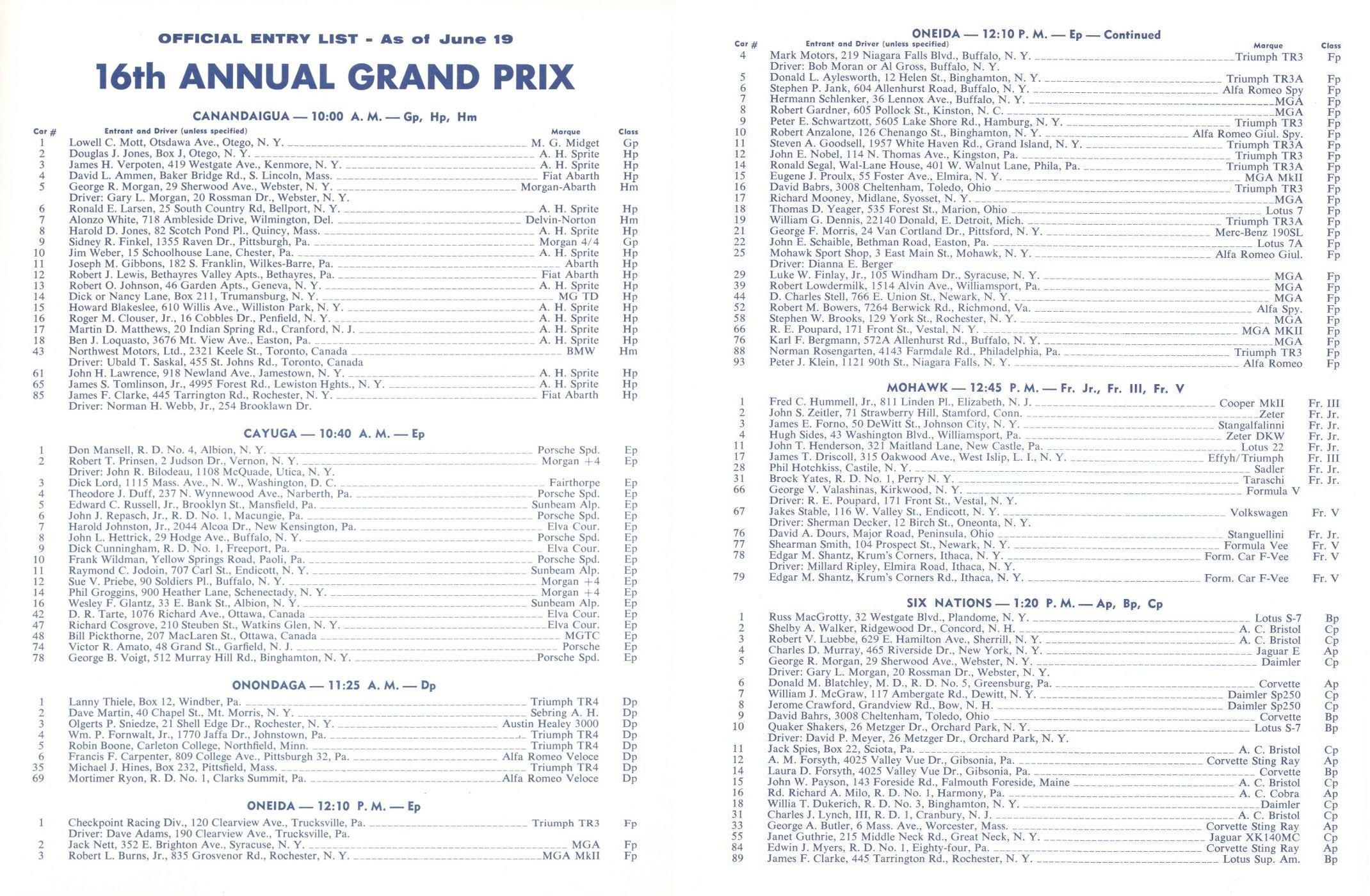 SCCA Regional Watkins Glen [CM+DM+EM+FM+GM] 1963