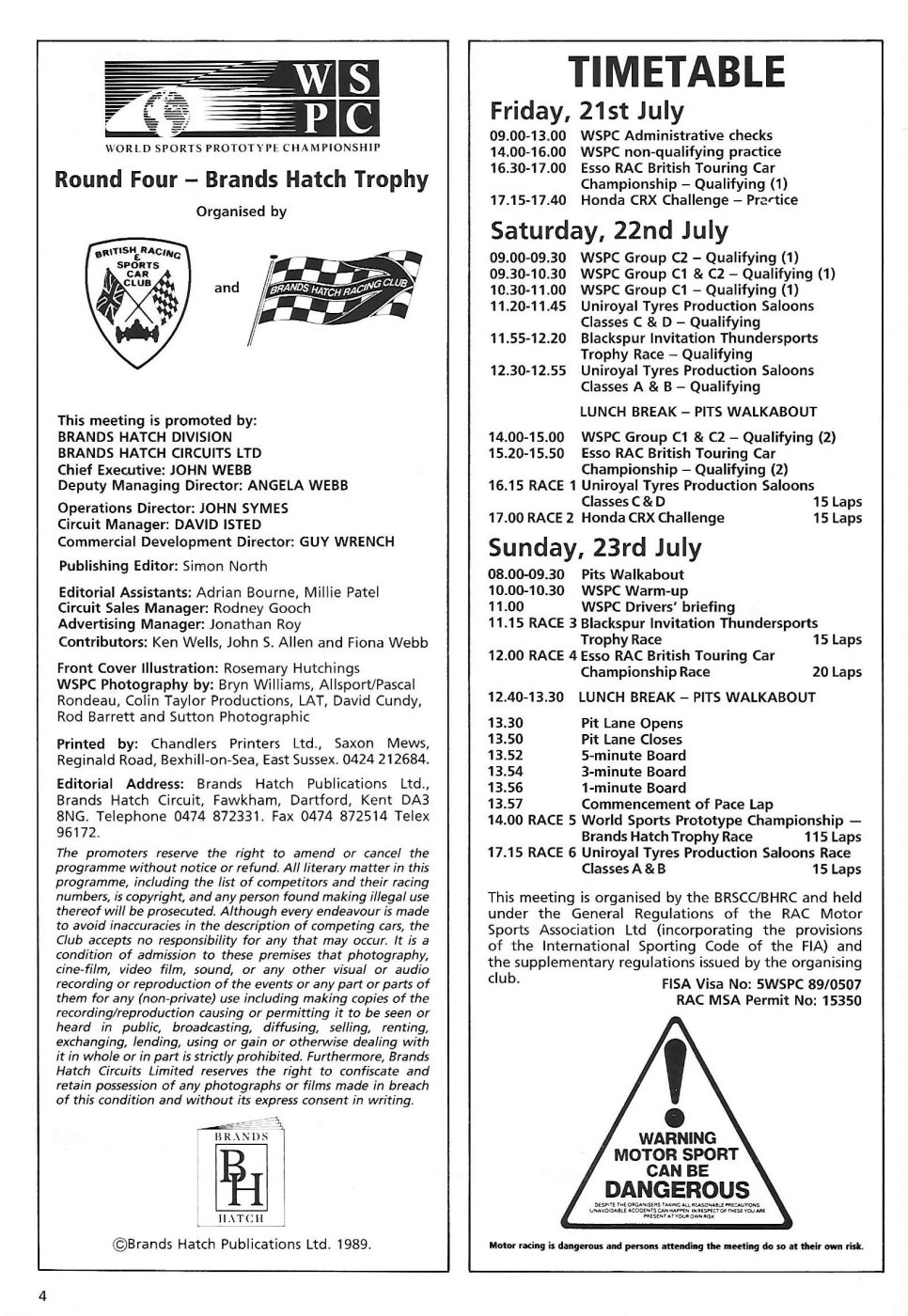 World Sports Prototype Championship Brands Hatch - 23 July 1989