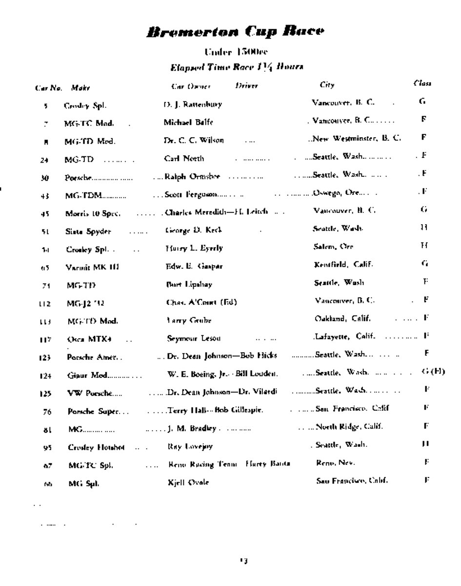 SCCA Regional Bremerton - Sports 1500 cc - 11 August 1957