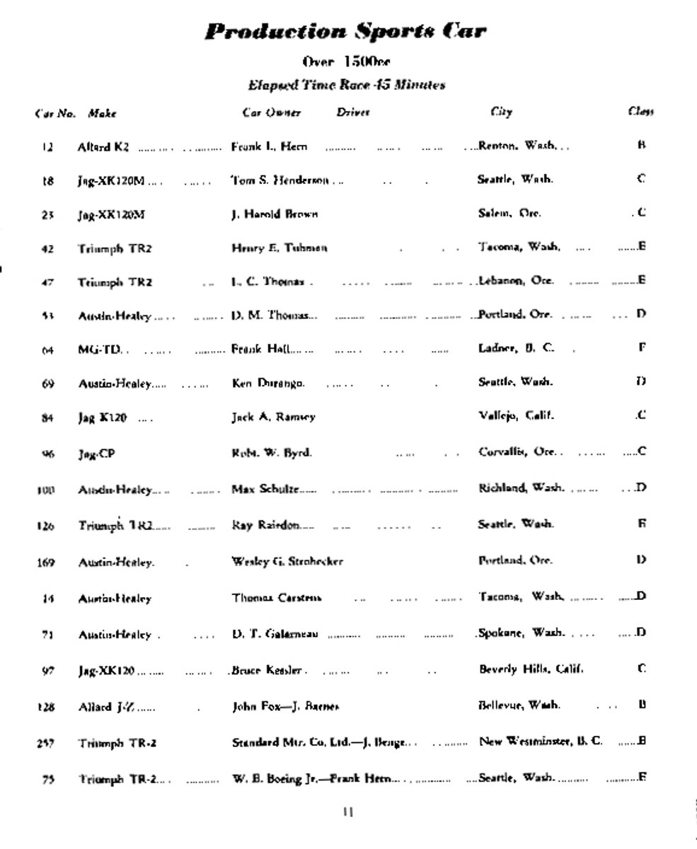 SCCA National Seattle Seafair - Production Cars Under 1500 cc - 08 August 1954