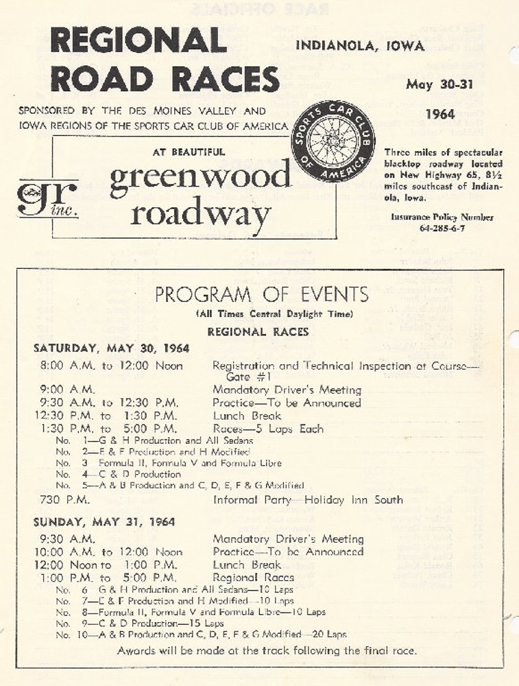 SCCA Regional Greenwood [GP+HP+Sedan] - 31 May 1964