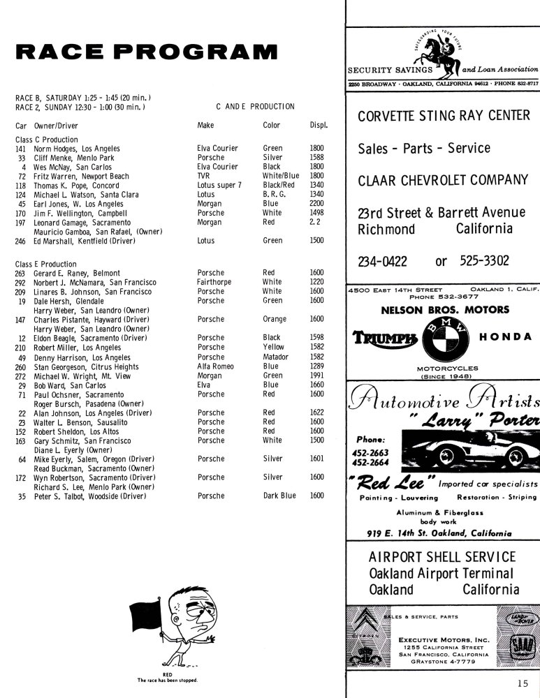 SCCA Divisional Vaca Valley [HM+FP] - 13 September 1964